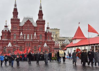 21 декабря исполнилось 136 лет со Дня рождения Иосифа Виссарионовича Сталина. В Москве тысячи людей пришли в это утро на Красную площадь. Цветы были возложены к Мавзолею В.И. Ленина и могиле И.В. Сталина у Кремлевской стены. Колонну под красными знаменами возглавил Председатель ЦК КПРФ Г.А. Зюганов. После окончания торжественной церемонии лидер Компартии выступил перед журналистами.