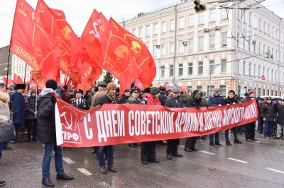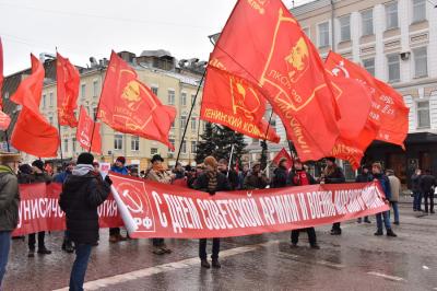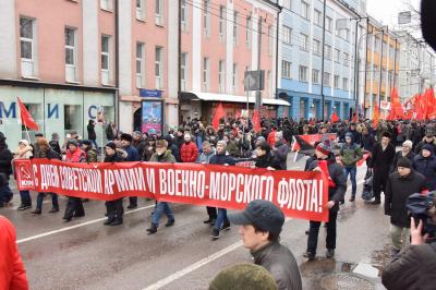 прошла под лозунгами «С Днем Советской Армии и Военно-Морского Флота!», «Армия,