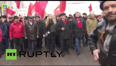 Прямая трансляция праздничного шествия КПРФ в честь 98-й годовщины создания Советской армии и Военно-морского флота.