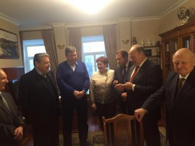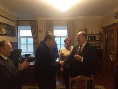 В понедельник, 29 февраля, Председатель ЦК КПРФ Г.А. Зюганов посетил Орловское землячество в Москве. Лидер коммунистов поздравил с 85-летием председателя этой общественной организации, члена Союза писателей России Альберта Петровича Иванова.