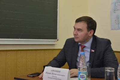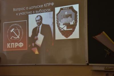Разговор о развитии российского парламентаризма получился интересным и насыщенным. Студентки колледжа представили доклады о различных периодах в истории Госдумы, с 1906 года и до наших дней. Юрий Афонин в своем выступлении высоко оценил работу учащихся, их свободное владение историческим материалом. Особенно он отметил доклад, посвященный трагическим событиям октября 1993 года - расстрелу здания Верховного Совета в Москве. В докладе была приведена оценка тех событий современным российским обществом: 60% населения сегодня считают применение силы в разрешении конфликта ошибочным и только 19% оправдывают. "История показала, что прав был наш лидер Геннадий Зюганов, призывавший все стороны к мирному решению, - подчеркнул Юрий Вячеславович. - Но Ельцин решился пролить кровь защитников Дома Советов, и от этой крови ему никогда не отмыться". Вообще, заметил Юрий Афонин, история 1990-х годов еще не написана, не подсчитано по-настоящему число потерь народа в это разрушительное десятилетие. Ясно одно: Россия была на один шаг от распада, действовали сильные центробежные силы, и остановить это удалось только в 2000-е годы.