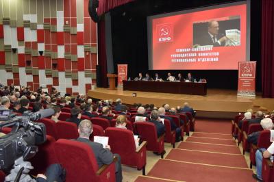 25 марта в Подмосковье прошел семинар-совещание руководителей комитетов региональных отделений КПРФ и главных редакторов региональных партийных изданий. Перед участниками форума с докладом «О социально-экономической ситуации и очередных задачах партии» выступил Председатель ЦК КПРФ Г.А. Зюганов.
