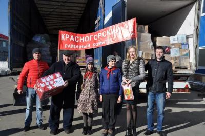 Приняли посильное участие в отправке гумконвоя пионеры из Красногорского района. Они своими силами собрали для пионеров Луганска и Донецка школьные принадлежности. «Эту посылку мы собрали от души. Надо помогать попавшим в беду», - сказала красногорская пионерка Юлия Дворецкая.