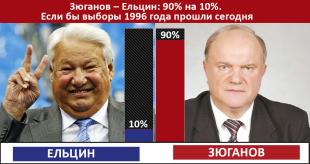 Ельцин. Итог известен – победителем был объявлен Ельцин, а выборы 1996 года