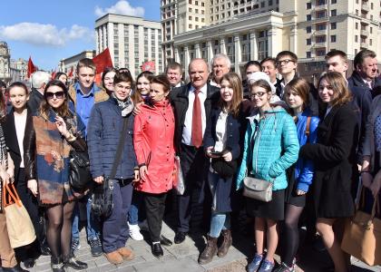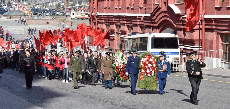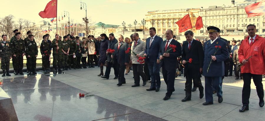 12 апреля, в день 55-летия первого космического полета, коммунисты, комсомольцы, сторонники партии пришли на Красную площадь. Они возложили цветы к Мавзолею В.И. Ленина и к урне с прахом Ю.А. Гагарина в Кремлевской стене. Возглавил колонну под красными флагами лидер КПРФ Г.А. Зюганов.