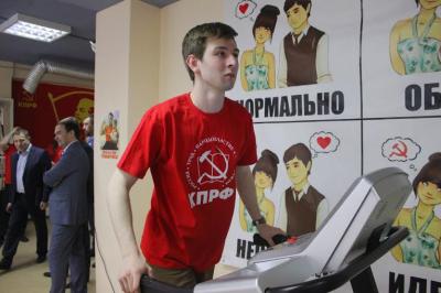 Торжественно разрезав красную ленту, коммунисты прошли в зал, где руководители обкома КПРФ и комсомольцы провели демонстрацию на спортивных тренажерах.