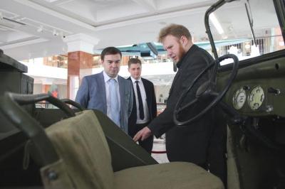 В сопровождении первого секретаря Свердловского обкома КПРФ Александра Ивачева и сотрудников музея Юрию Вячеславовичу показали эксклюзивные военные экспонаты всех времен военной истории России. В большинстве своем военная техника прошлого века была в свое время откопана из болот археологами и тщательно отреставрирована.