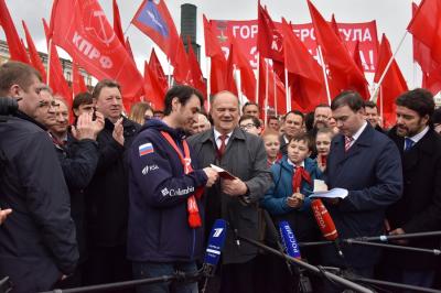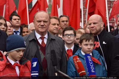 В ходе выступления Геннадий Андреевич рассказал, что сегодня на Красной площади присутствует легендарный боец смешанных единоборств Джефф Монсон, известный своими левыми взглядами. Накануне состоялась его встреча с лидером КПРФ. «Я задал Джеффу вопрос о том, как он пришел к идее, что без справедливости мир не сможет существовать, - поделился Геннадий Андреевич. - Он в ответ сказал, что был во многих странах, но не ожидал, что на планете так много несчастий, так много бедных и брошенных детей, что капитализм так поиздевался над природой. Поэтому надо спасать детей, спасать совесть, спасать душу. И за это должны бороться все прогрессивные народы мира».