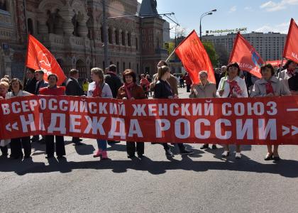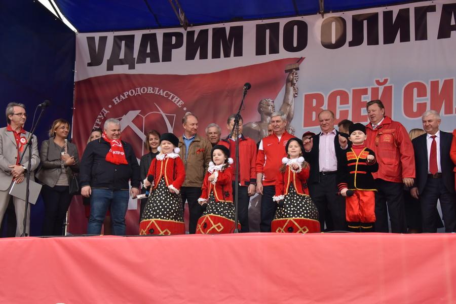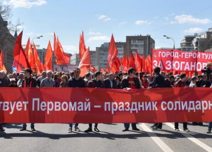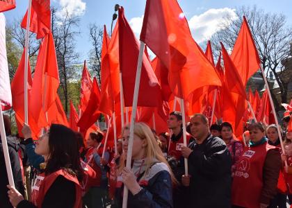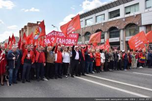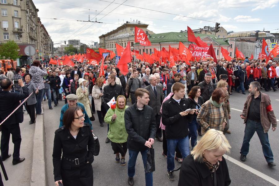 1 мая в Москве состоялись шествие и митинг. Колонна под красными флагами прошла от Октябрьской до Театральной площади столицы.