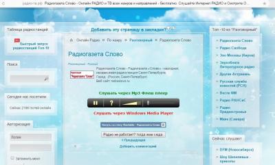 Также к примеру, на сайте радио-тв.рф «Радиогазета «Слово» входит в ТОП — 10 ( жанр разговорный) и занимает первую строчку.