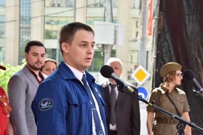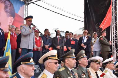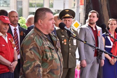 Московской областной организации «Союз Советских офицеров» А.Н. Соколов поздравил участников митинга с Днем Победы. Он