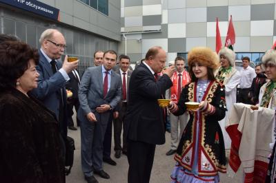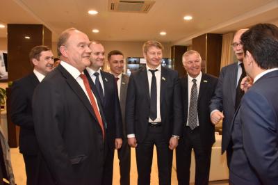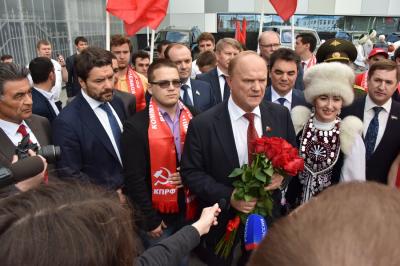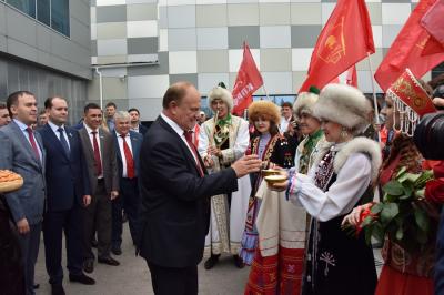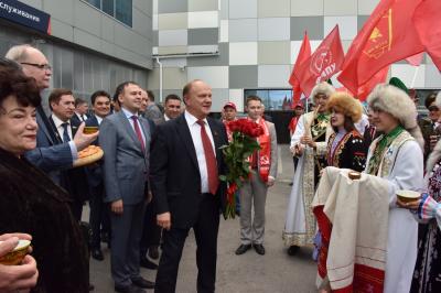 Г.А. Зюганова сопровождали депутаты-коммунисты Государственной Думы Ю.В. Афонин, В.В. Бортко, С.П. Обухов, К.К. Тайсаев, А.П. Тарнаев, Т.В. Плетнева, А.А. Ющенко, первый секретарь Башкирского рескома КПРФ Ю.Г. Кутлугужин.