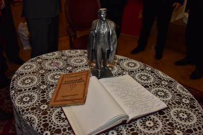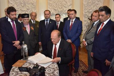 Г.А. Зюганов осмотрел экспозицию музея и оставил запись в книге почетных гостей. Выступая перед журналистами, лидер КПРФ напомнил о выдающейся роли В.И. Ленина в создании первого в мире социалистического государства. Г.А. Зюганов также отметил, что советская страна создавалась на основе справедливости, дружбы и братства народов. Только на этих принципах можно было сплотить распавшуюся Российскую империю в новом облике союзного государства. Лидер КПРФ также рассказал, что именно в Уфе в 1924 году был установлен первый памятник Владимиру Ильичу Ленину. Несколько лет назад под видом реконструкции кое-кто хотел его убрать, но после встречи Г.А. Зюганова с руководством республики памятник был восстановлен. Сегодня монумент находится в прекрасном состоянии.