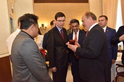 В ходе встречи Г.А. Зюганов вручил Р.З. Хамитову высшую награду СКП-КПСС «Орден Дружбы». В свою очередь Глава Башкортостана передал лидеру КПРФ Герб Республики и бочонок традиционного башкирского меда.
