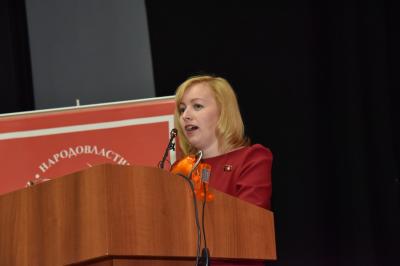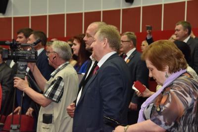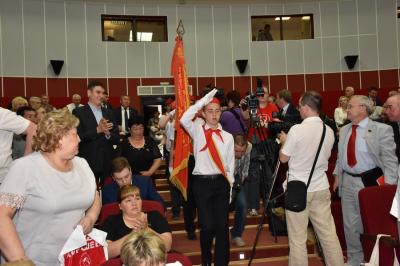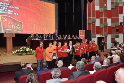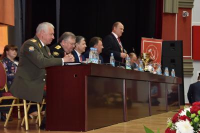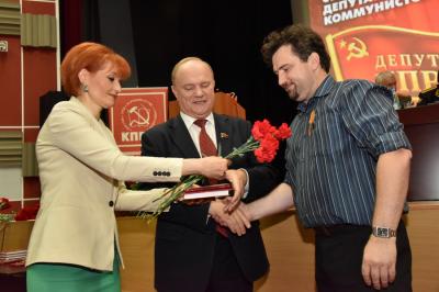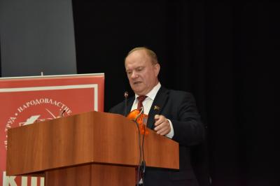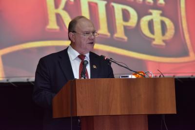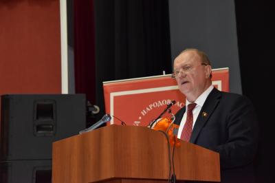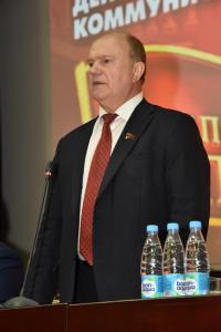 После этого слово было предоставлено лидеру российских коммунистов Г.А. Зюганову. Он выступил с докладом «Мобилизация ради победы!».