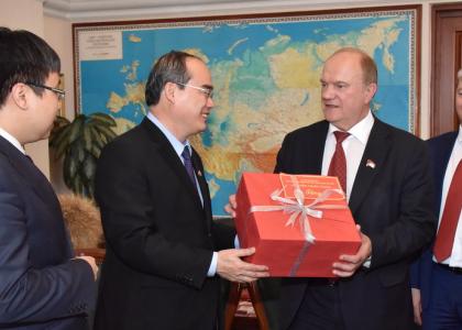 7 июня состоялась встреча Председателя ЦК КПРФ Г.А. Зюганова с членами делегации Отечественного фронта Вьетнама, возглавляемой Председателем Отечественного фронта СРВ, членом Политбюро ЦК КПВ Нгуеном Тхиеном Няном.
