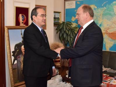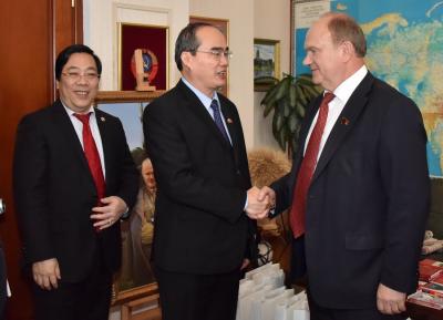 7 июня состоялась встреча Председателя ЦК КПРФ Г.А. Зюганова с членами делегации Отечественного фронта Вьетнама, возглавляемой Председателем Отечественного фронта СРВ, членом Политбюро ЦК КПВ Нгуеном Тхиеном Няном.