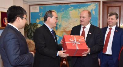 В беседе приняли участие Чрезвычайный и Полномочный Посол СРВ в Российской ФедерацииНгуен Тхань Шон и заместитель Председателя ЦК КПРФ Д.Г. Новиков.