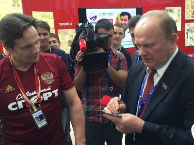 Лидер КПРФ Г.А. Зюганов принимает участие в Петербургском международном экономическом форуме. По просьбе журналистов, он поделился своими впечатлениями от этого крупнейшего внешнеполитического мероприятия.