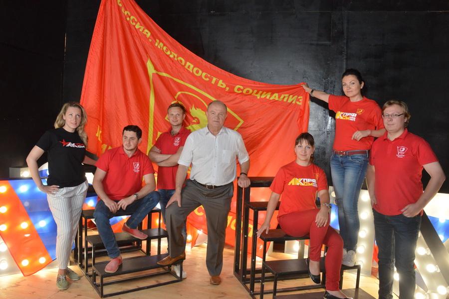 лидера КПРФ молодые коммунисты и комсомольцы, которые принимают участие в