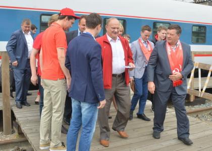 лидера КПРФ молодые коммунисты и комсомольцы, которые принимали участие в