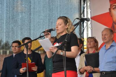 Затем обращение митинга зачитала член бюро Тульского обкома Ленинского Комсомола Анастасия Ефремова.