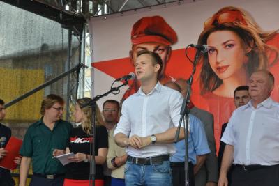 Слово предоставили кандидату в депутаты Московской областной Думы от КПРФ Сергею Андрееву. Молодой человек рассказал, что ему 23 года, что он родился в капиталистической России и об СССР знает только из книг, старых кинофильмов и рассказов старших товарищей. По словам Сергея Андреева, он ощущает на себе все тяготы социализма. «Единственный выход из этого тупика – путь к социализму вместе с КПРФ», - призвал молодой оратор.