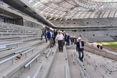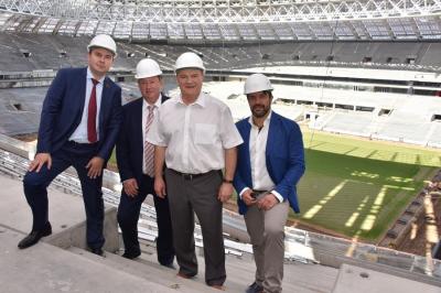 Лидер коммунистов ознакомился с тем, как проходит реконструкция стадиона к Чемпионату мира по футболу 2018 года. Затем прошла встрече с сотрудниками спортивного комплекса. Руководству спортсооружения были вручены почетные грамоты Государственной Думы и ЦК КПРФ.
