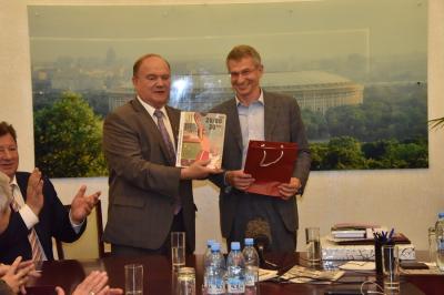 Г.А. Зюганова также сопровождали заместитель Председателя ЦК КПРФ В.И. Кашин, член Президиума, секретарь ЦК КПРФ Ю.В. Афонин, руководитель Пресс-службы ЦК КПРФ А.А. Ющенко, депутат Государственной Думы Б.В. Иванюженков.