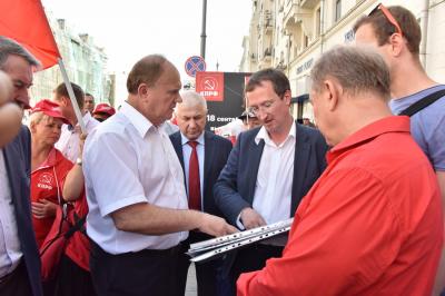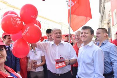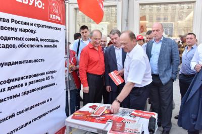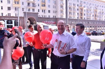 24 августа в центре Москвы состоялась акция «Галерея кандидатов». Вдоль Тверской улицы были размещены кубы кандидатов в депутаты Госдумы VII созыва от КПРФ по всем одномандатным округам столицы, а также кандидатов из федерального списка. В мероприятии принял участие лидер Компартии Г.А. Зюганов.
