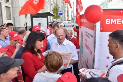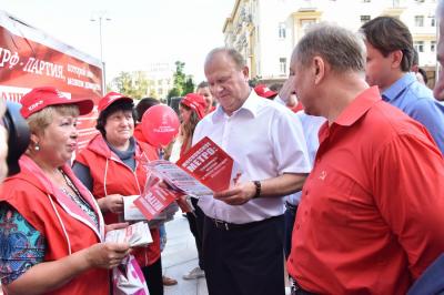 В ходе акции Председатель ЦК КПРФ провел раздачу агитационной продукции, встретился с кандидатами-коммунистами. Он также пообщался с избирателями и принял их наказы. Г.А. Зюганова сопровождал заместитель Председателя ЦК КПРФ Д.Г. Новиков.