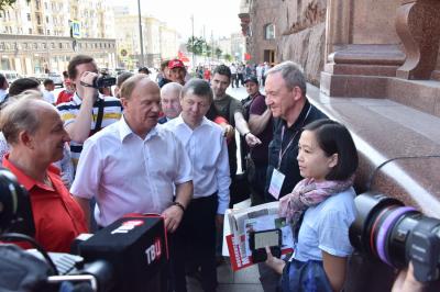 к журналистам вновь обратился Председатель ЦК КПРФ Г.А. Зюганов. «Я должен поблагодарить москвичей, которые показывают