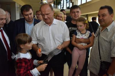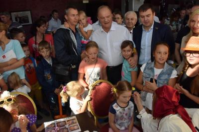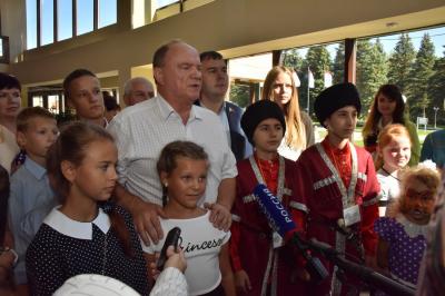 Также Геннадий Андреевич рассказал о движении "Дети России - детям Донбасса", оказывающем помощь детям из семей, пострадавших во время вооруженного конфликта. Он сообщил, что благодаря этому проекту более двух тысяч человек прошли оздоровление в этом подмосковном доме отдыха, получили возможность познакомиться с нашей страной. От лица присутствующих в зале лидер коммунистов передал привет детям Новороссии и пожелал им мирного неба и доброго здоровья.