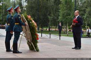 Цветы были также возложены к стелам городов-героев и городов воинской славы у Кремлевской стены и к памятнику Маршалу Советского Союза Г.К. Жукову.