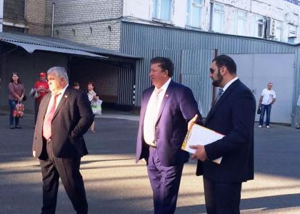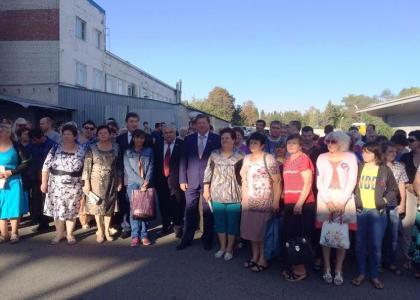 гостей коллектив «Эскома» встретил на своей территории с кумачовыми знамёнами и стендами с политической рекламой депутатов-коммунистов.