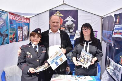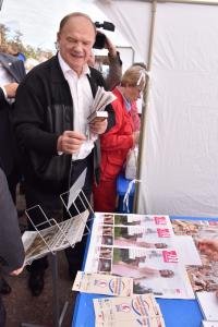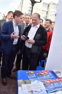 он осмотрел стенд газеты «Правда». Затем лидер КПРФ выступил перед