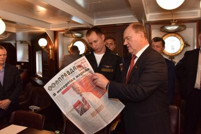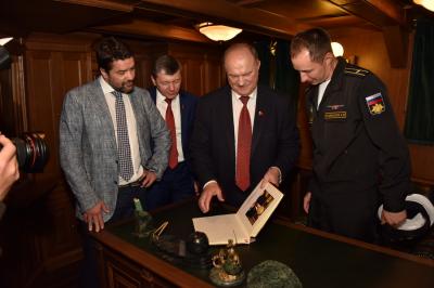 половине дня лидер КПРФ побывал на легендарном крейсере «Аврора». Недавно он
