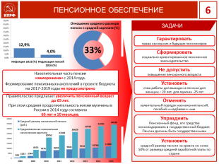 В принятых реформах было одно ключевое положение, в закреплении которого главная роль принадлежала фракции КПРФ: государство брало на себя обязательство ежегодно в феврале месяце увеличивать страховую пенсию на уровень инфляции прошедшего года. Но это положение проработало только год и было приостановлено партией власти. В этой связи, несмотря на 12,9% инфляции в 2015 году, в 2016 году пенсии были проиндексированы лишь на 4%.