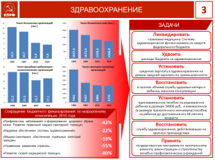 - удвоить бюджет здравоохранения. Финансирование здравоохранения считать приоритетной социальной задачей;