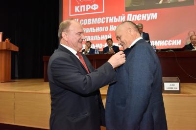 В завершение Г.А. Зюганов поздравил товарищей, недавно отпраздновавших свои юбилеи, и вручил им партийные награды.