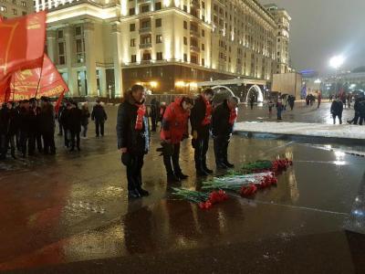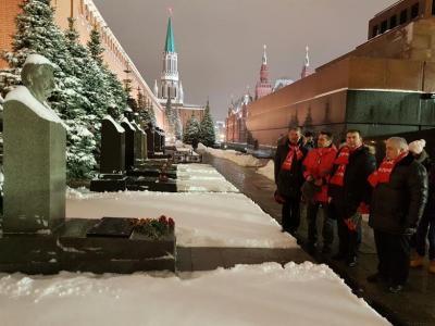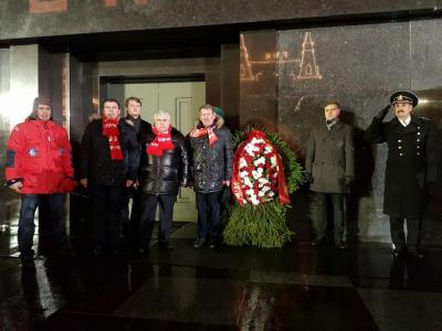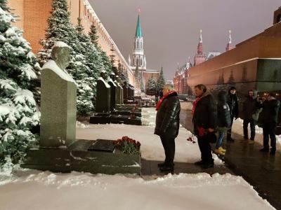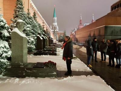В связи с 99-летием Октябрьской революции, делегация ЦК КПРФ во главе с Юрием Афониным и Казбеком Тайсаевым возложила венок и цветы к Мавзолею В.И. Ленина и памятнику И.В. Сталину