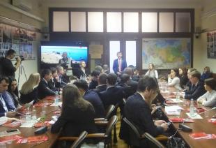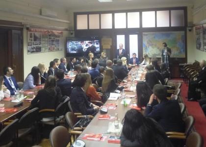 Что сегодня волнует молодых политиков в нашей стране и за ее пределами? Как в России, так и на Западе многие парламентарии, несмотря на санкции и давление со стороны СМИ, выступают за развитие торгово-экономических связей между государствами и налаживание добрососедских отношений. Об этом молодые парламентарии говорили в среду в ходе встречи во фракции КПРФ в Государственной Думе. Общение с гостями открыл своим выступлением Председателем ЦК партии Г.А. Зюганов. В продолжение встречи его заместитель Д.Г. Новиков ответил на вопросы присутствующих.