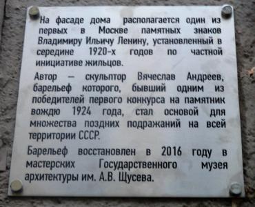 одной из версий барельеф появился здесь не случайно - в 1918 или 1919 году Ленин