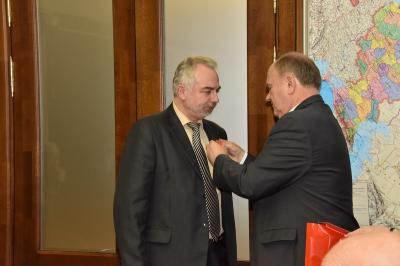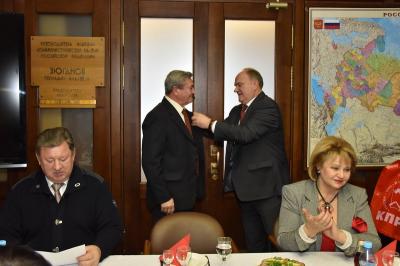 декабря Председатель ЦК КПРФ Г.А. Зюганов наградил памятной медалью ЦК КПРФ «75