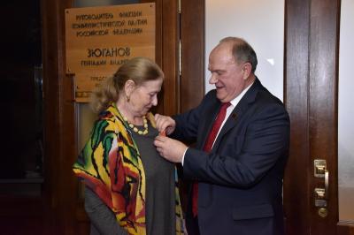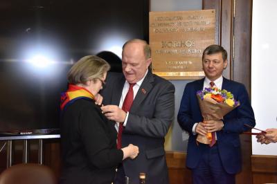 декабря Председатель ЦК КПРФ Г.А. Зюганов наградил памятными медалями ЦК КПРФ «75