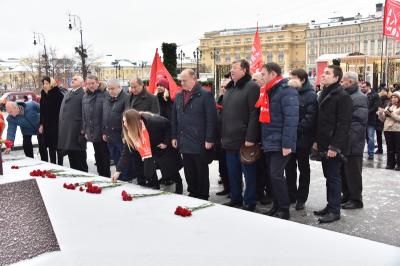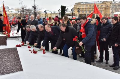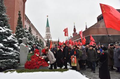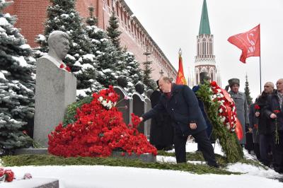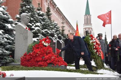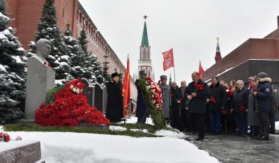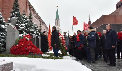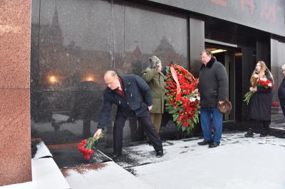 мероприятия возложили цветы к Мавзолею В.И. Ленина, могиле И.В. Сталина у