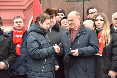Сегодня, чтобы выходить из кризиса, чтобы ликвидировать социальный раскол, который только нарастает, нищету и безработицу, надо опереться, прежде всего, на Великую Советскую эпоху и все победное, что было в нашей тысячелетней истории. Еще раз поздравляю вас с этим памятным днем и желаю всем успехов. Хочу также пожелать, чтобы в новом юбилейном году мы достойно встретили 100-летие Великого Октября, этот выдающийся юбилей, на празднование которого к нам приедут представители коммунистических и левых партий почти со всей планеты.