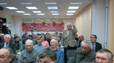 Поскольку большую часть аудитории составляли члены общественной организации «Дети войны», Н.В. Арефьев подробно остановился на деятельности этой всероссийской организации. Призвал почаще заходить на её сайт, где можно ознакомиться со всеми новостями и документами. Отметил, что «дети войны» всегда будут в поле зрения КПРФ. Рассказал о четырёх проектах федерального закона о «детях войны», предлагавшихся с 2012 года КПРФ, но так и не принятых к рассмотрению единороссовским большинством Думы. Ну, не хотят власти, сказал он, изыскивать 230 миллионов рублей, которые необходимы на реализацию предусмотренных законом льгот для граждан страны, родившихся в 1928 – 1945 годах. Правда, последний вариант закона прошёл-таки полугодовую правительственную экспертизу (заключение, понятное дело, отрицательное), внесён в Думу 6 октября 2016 года и имеет шансы быть рассмотренным депутатами в январе – феврале будущего года, заключил выступающий.