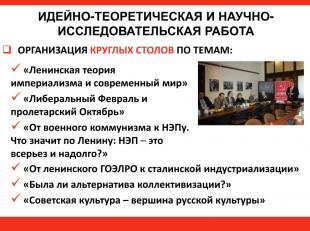 Другим направлением должна стать идейно-теоретическая и научно-исследовательская