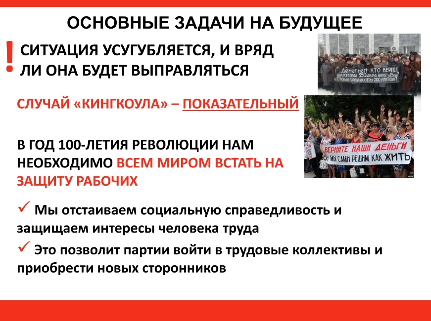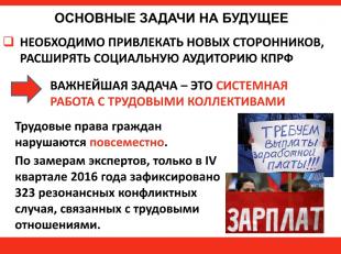 миром встать на защиту рабочих. Эта деятельность особо значима для КПРФ: с
